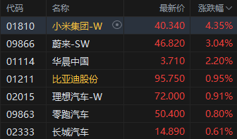 新能源车企股走强,小米涨超4%。11月24日晚间,小米集团在港交所发布公告称,公司创始人、董事长兼CEO雷军通过其全资拥有的Team Guide Limited购入260万股小米B类普通股,平均每股价格约38.58港元,总计斥资超过1亿港元。增持完成后,雷军共持有小米40.63亿股A类普通股及19.94亿股B类普通股,总计相当于公司已发行股份的约23.26%。